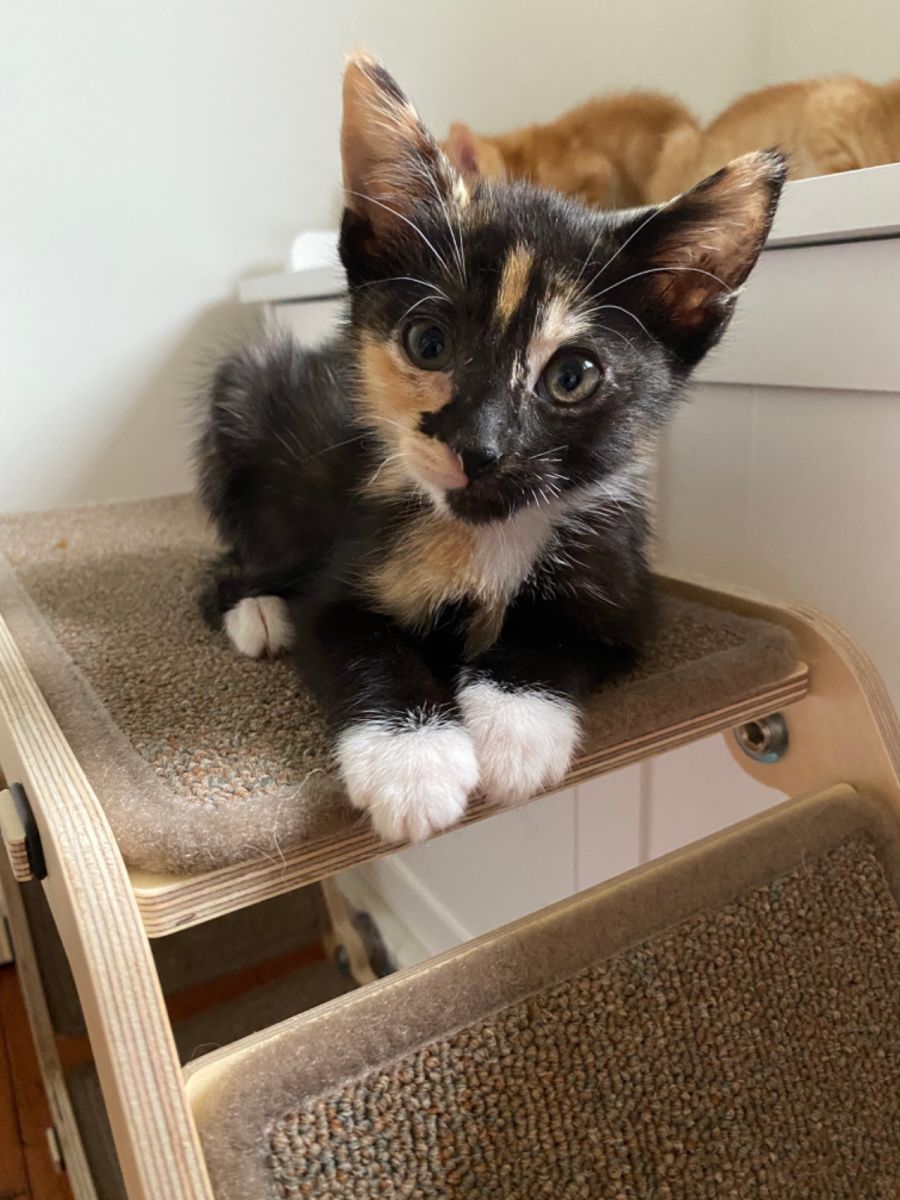 Adorable girl Jill came into care with her litter mates, and was taken on by a nursing Mumma cat in care. Jill is a lovable, playful girl who is currently loving being in a foster family!