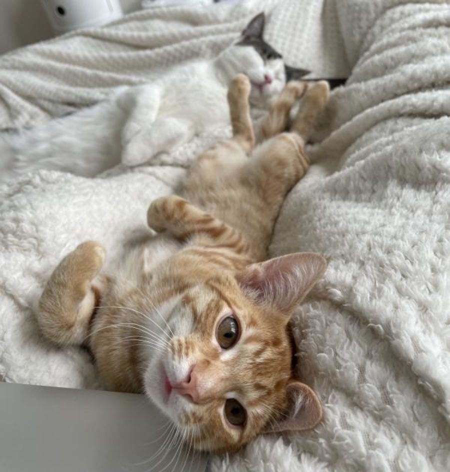 Pumpkin is a very high energy, playful and curious kitty. He loves to explore and has a high prey drive, always loving to chase around toys for enrichment. He also loves to sit in laps and cuddle which is the best of both worlds for cats. He is suitable for someone looking for a high energy cat that loves to have fun and is best in an environment with other cats. He loves to make biscuits in soft blankets and loves being with humans. Pumpkin has a huge personality which is noticed by everybody who meets him for the first time.