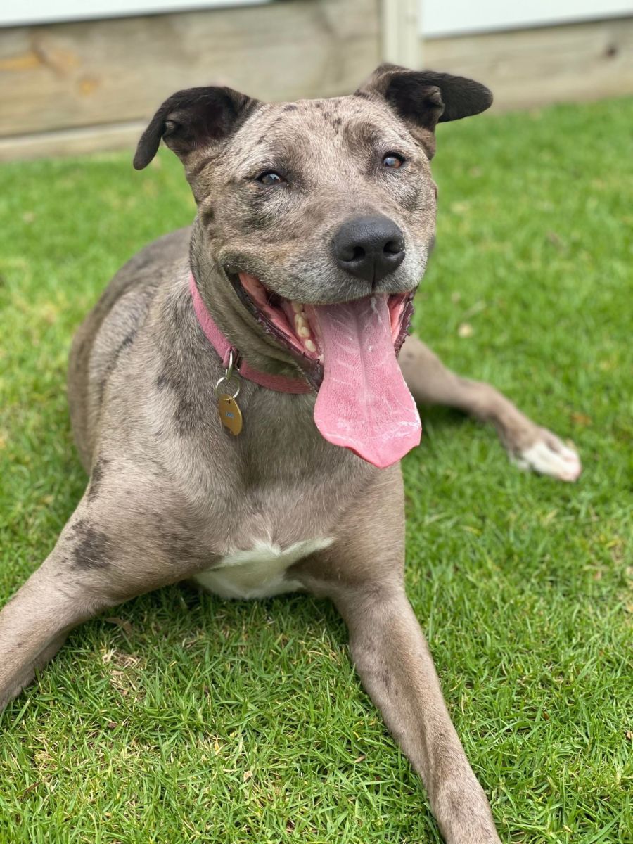Stella is a super friendly girl who loves to be with her people. As long as she knows that her humans are close, she is happy to spread out on the floor or couch for a nice, long snooze.