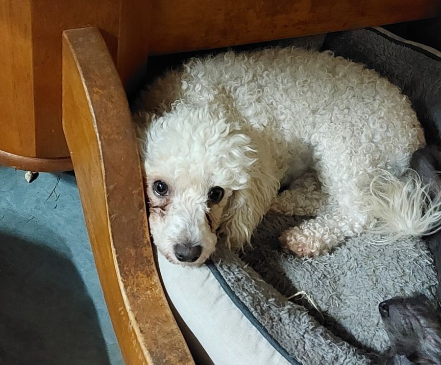 Frosty shy frosty's loving frosty's loves toys she loves other dogs she needs another dog in the house please text Chris add 0406612339 for more information I will speak to you as time permits please bear with us as it's always hard to get through applications Frosty is turning 4 years old in November this year she's a Bicshon cross poodle she has a long way to go but it will be very rewarding to help this beautiful girl Frosty is turning 4 years old in November this year