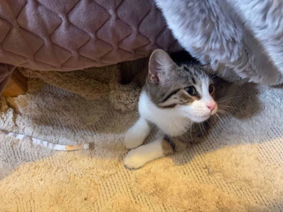 I need lots of stimulation with toys and spaces to play. I have a very healthy appetite and I’m currently on good quality ‘Trilogy’ dry food and ‘Felix’ pouches at dinnertime and also like grain free chicken cans.