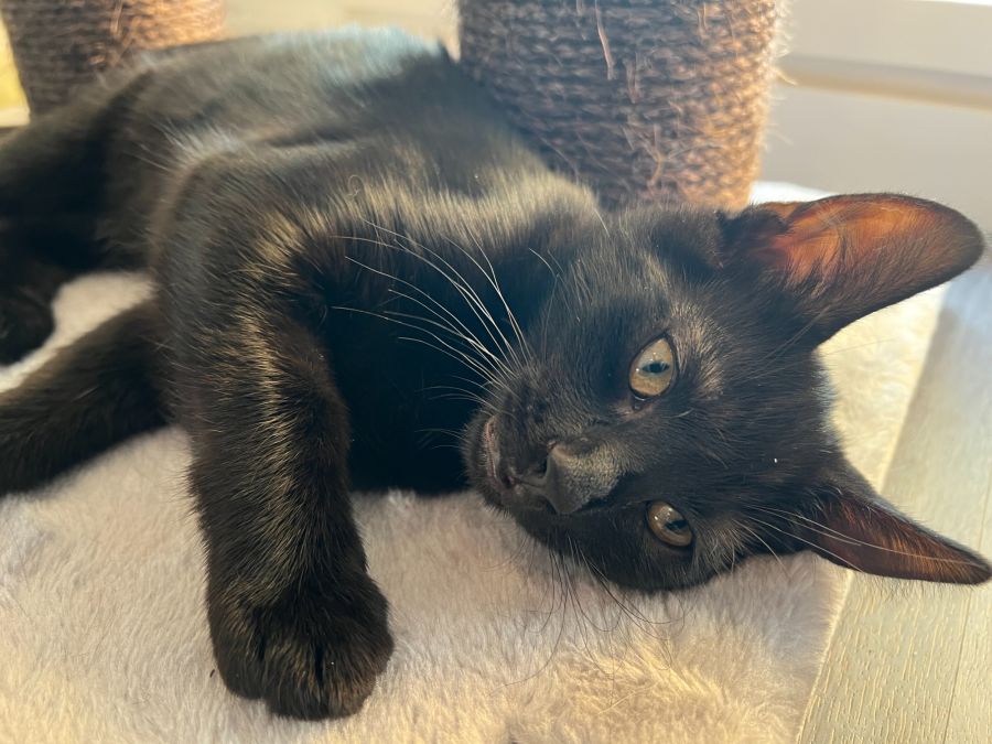 Rocket has a very loud purr, will proudly voice his opinions, and sticks his tongue out when he is happy.