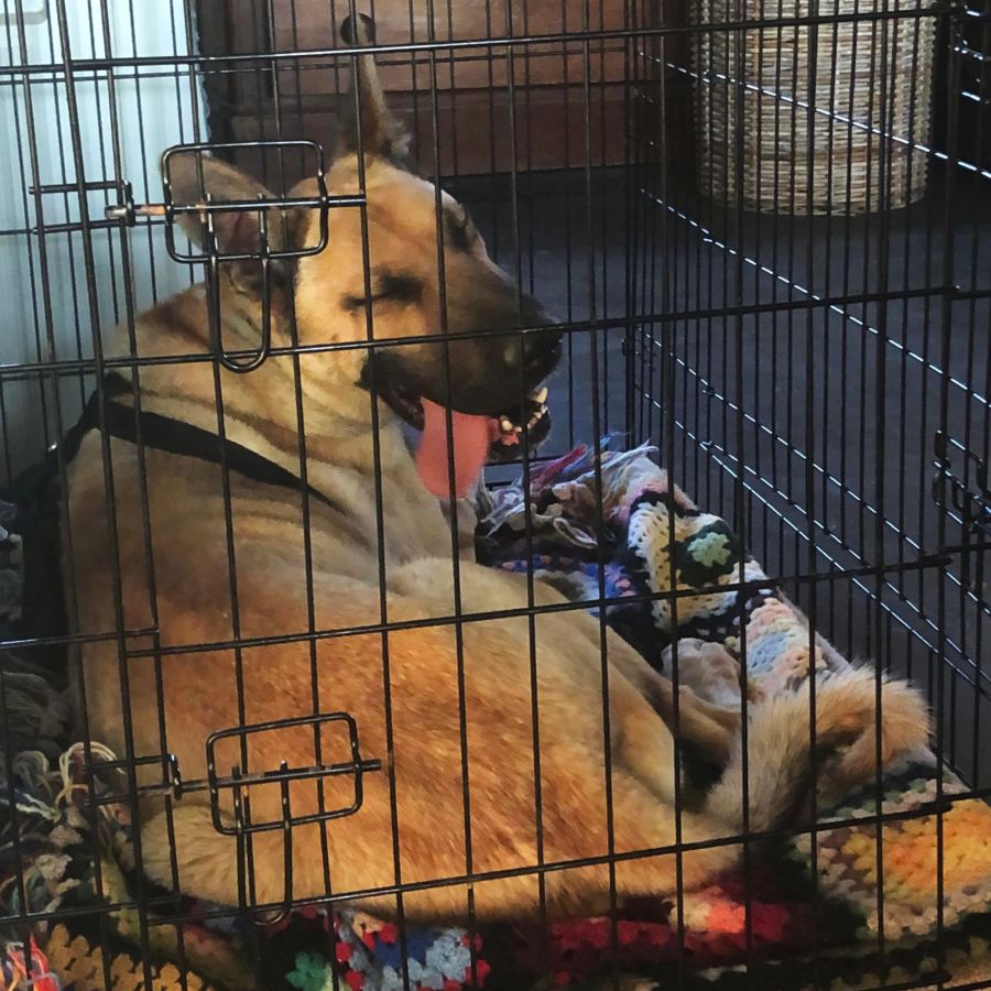 "Charlie is doing well, he slept inside in a crate last night. Seems pretty interested in the cats. Running around the yard with his new dog friends, very happy to be out of the pound. He comes when he is called, sits, and gets "in his bed".