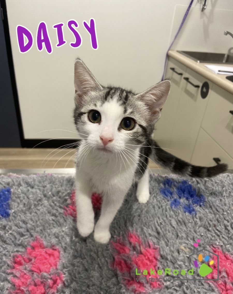 Sweetheart Daisy came into care with her litter mates, who were all suffering from severe, untreated flu symptoms. After treatment, an ICU stay in hospital and lots of extra TLC, Daisy is ready to find a new family to live with!