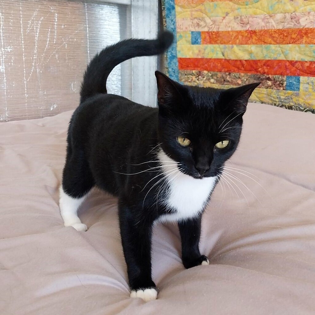 BETTY #578C is a gorgeous, friendly girl who loves the company of people but is not particularly keen on other cats. She will be three in July (DOB 01/06/20) and looks very smart with her white feet and striking white whiskers. Betty is desexed, chipped, vaccinated, worm/flea treated and vet checked.