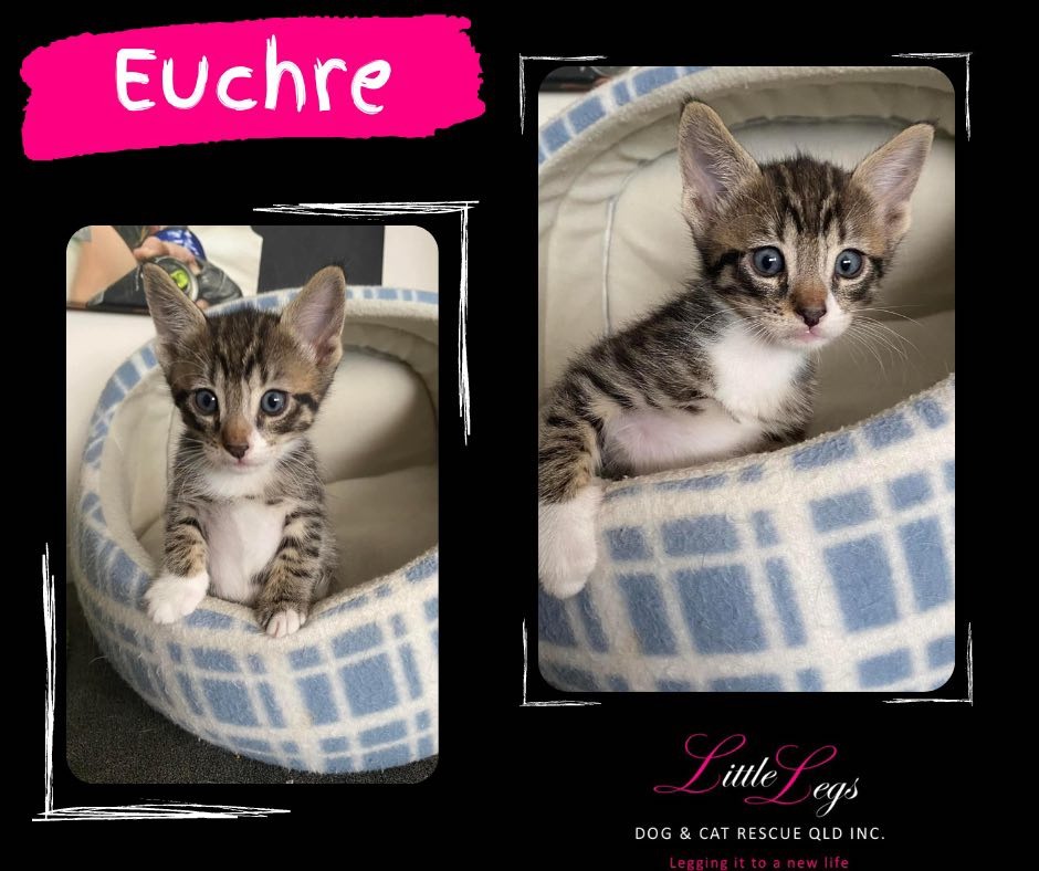 Hi there! My name is Euchre, and i'm searching for my forever family. I am the sweetest little boy you'll ever meet. I can be shy at first, but once I feel confident, you'll see me shine. I love to play with all the kitty toys, but my favourite thing to do is cuddle up on the lounge with you and purr up a storm. I'm a great little eater and I am fabulous at using the kitty litter tray too. So if I sound like I could fit into your family and you can give me the love I deserve, please apply to to come and meet me. I cant wait, see you soon xxx