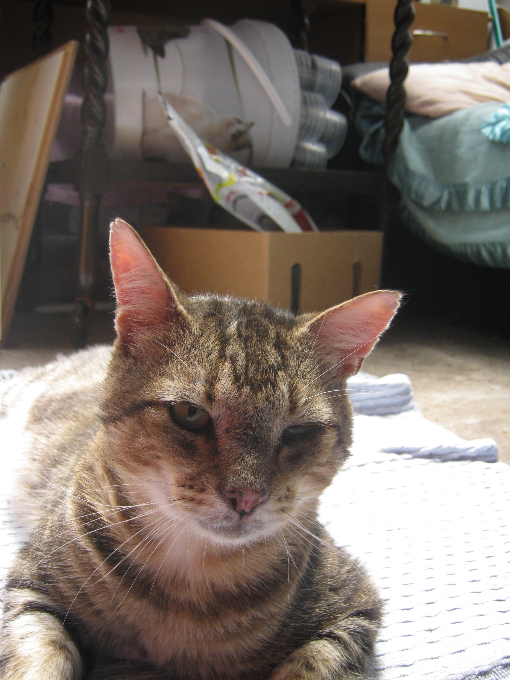 poor boy has been rescued twice and hopefully when he's rehomed it will be for the last time. % years old,he needs to go to a home where he will be treated with lots of love and kindness. He does need care taken with his health. As he appears to have a few allergies to flies,mosquitoes etc. He is a lovely natured boy,gets on with other cats,not aggressive at all. He is fiv vaccinated. Chatty and affectionate. Give mick a chance. He is located in doveton