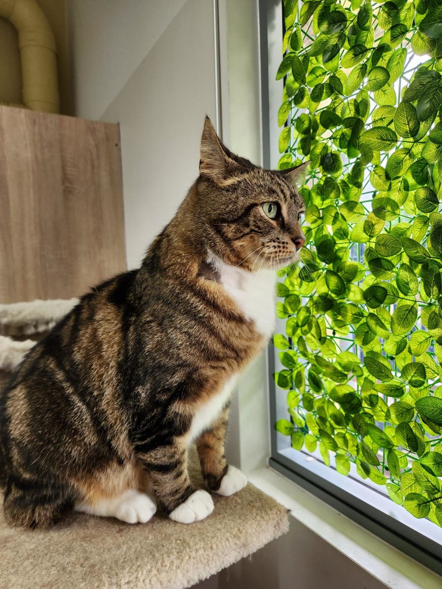 Personality: I am a sweet and gentle boy who loves to relax and lounge out in bed while receiving endless pats. I also tend to bunt when my human friends spoil me with love and attention and am never opposed to cuddles in your lap. I am very calm and gentle and am happy when I get to sit on my scratching post and watch the world around me out the window.
