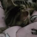 The condition has impacted Cola’s back legs but thankfully it is only very mild. She can run, play, jump and climb like normal kittens but she has a bit of a funny look to her walk on her back legs sometimes.
