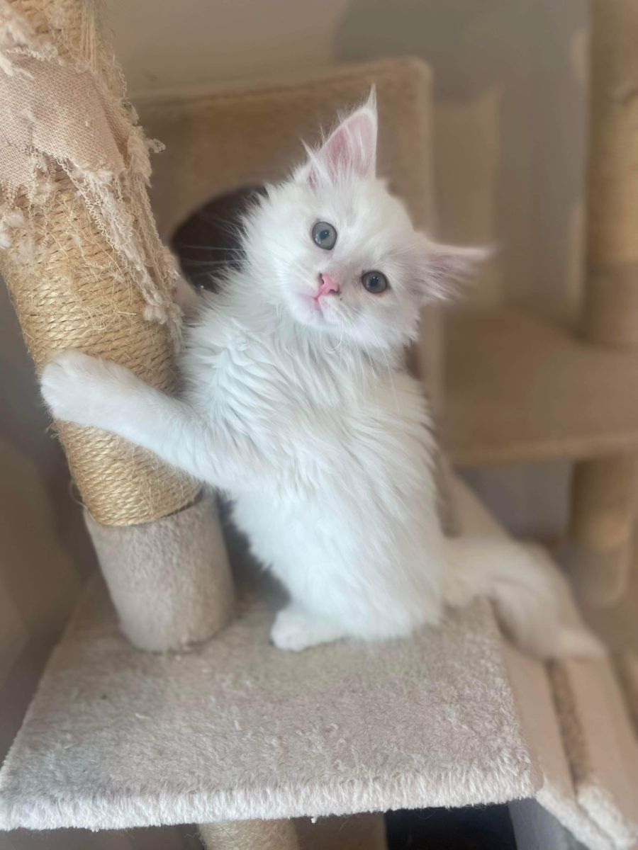 Keiko has long and luscious fur so he needs daily brushes to keep him looking his best. His needy nature means he will need someone who is home often, he will also need a home with a feline friend to get all his energy out or to be adopted with one of his sisters.