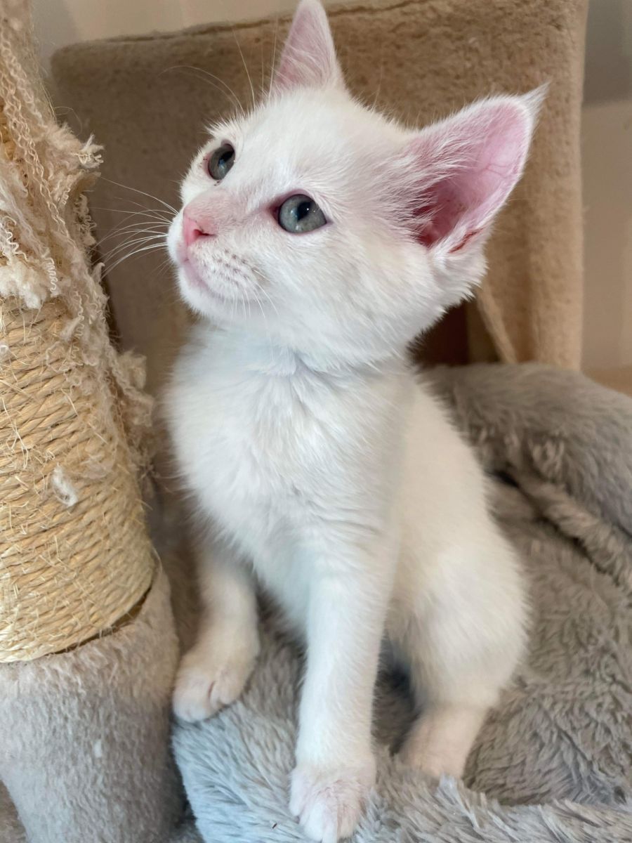 Yuki is the biggest lap cat, she loves nothing more than to be held and cuddled for every nap. She is very friendly and wants to be friends with all the other fosters and any humans in the house. When she is not napping on someone's lap she enjoys playing with wand toys and climbing the cat towers.