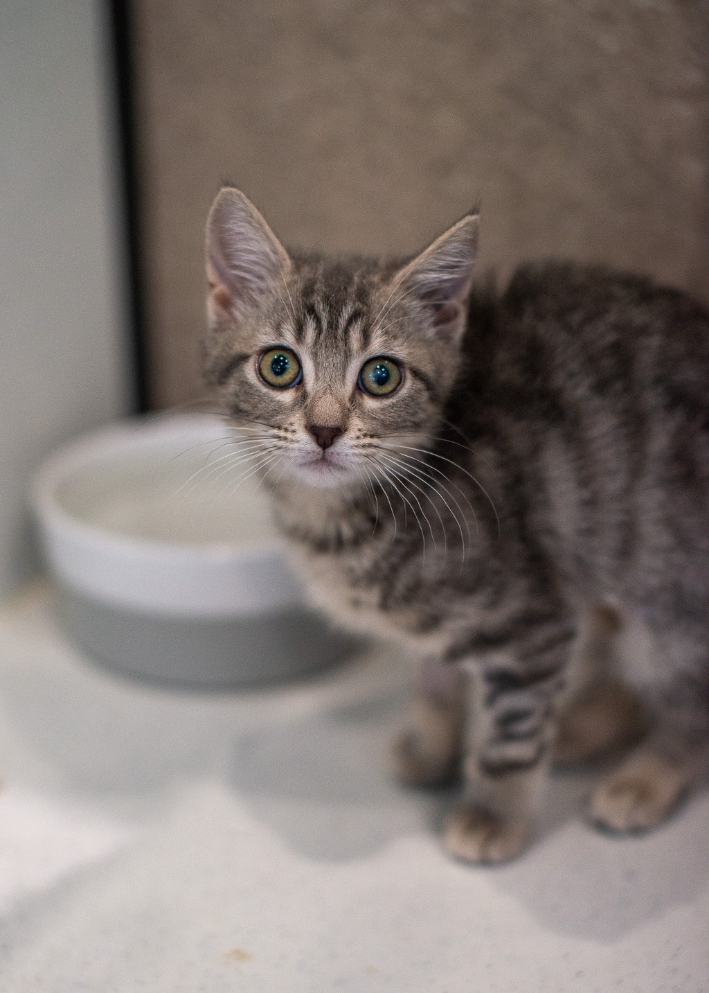 A gorgeous kitten who came into shelter at no fault of her own. She is cuddly and sweet and loves treats. She enjoys playing with string toys and chasing bell balls. Like all kittens they require a dedicated home to help use their energy, cuddly beds and scratching posts close by for zoomies. Cherubim has known no other animal besides her devoted mother, Seraphim whom we would like to see rehomed with little Cherubim. These two are bonded and would be devastating to think of splitting up.