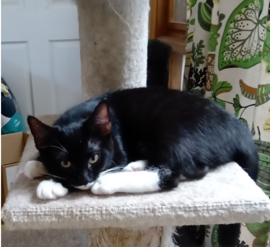 Soxy and his sister Ellie were dumped in a park in Banksia with their Mum just before New Year’s Day. Mum found a loving home and her kittens are looking for their own home now. Soxy looks very smart with his shiny black coat and white feet. Soxy purrs when he gets rubs under the chin.