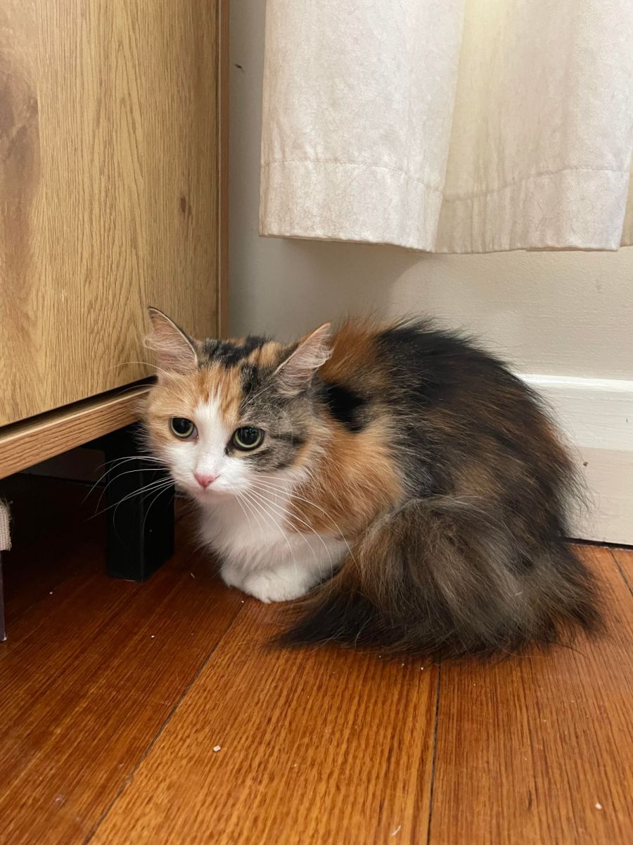 She will need a pet free home as she is a bit scared of her foster cat siblings and is not tested with dogs.