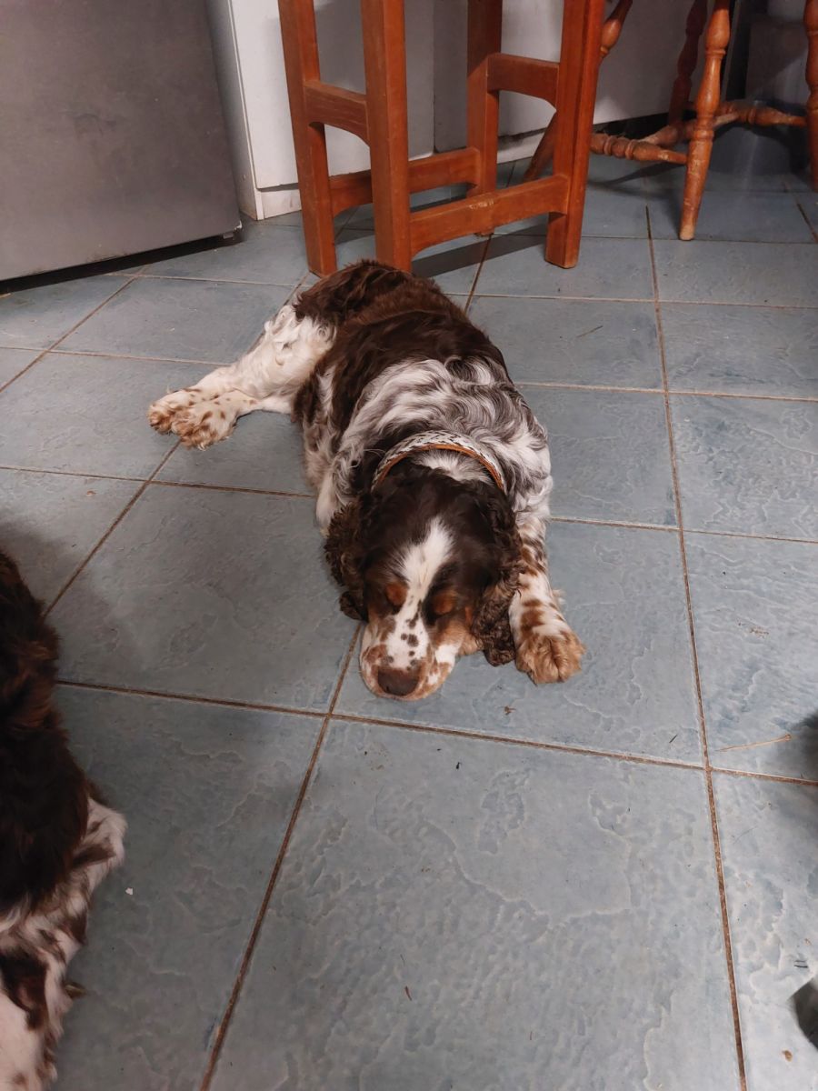Carla is a four-year-old English spaniel She's a very sweet girl who loves to be cuddlesd and who loves to be around you very affectionate.