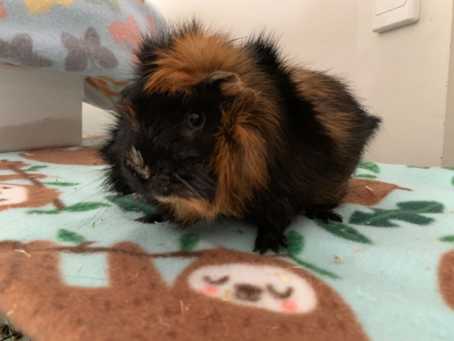 Ozzy is a fully intact male with lots of character! Ozzy came to us just skin and bones along with another piggie who bullied him. As he gained weight he was paired with another piggie called Latte. If you follow our page you will know Latte suffered from Bladder Stones and passed away after surgery leaving Ozzy feeling a little lonely.