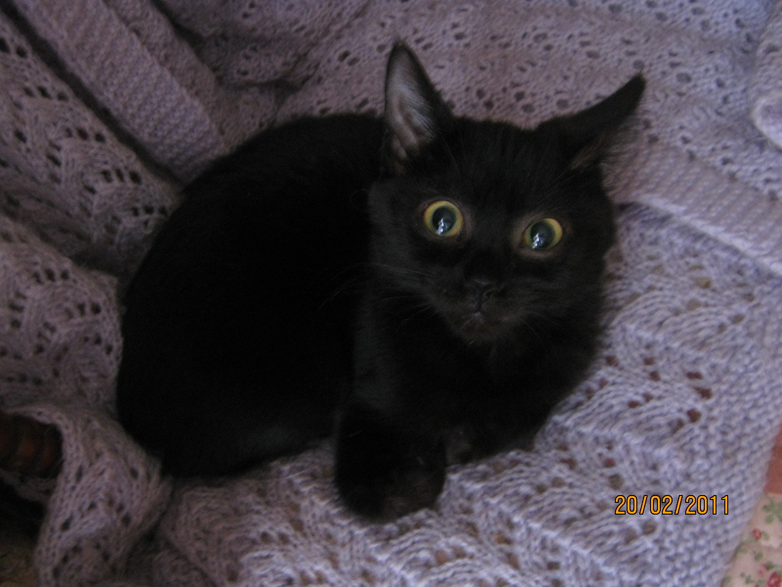 Bast kittens will be at pet goods direct in moorabbin on saturday 12. 3. 2011 from 11am - 4pm e-mail to find out if the cat you like will be there. Black with yellowish round eyes, shirley is a tiny, fine boned little cat who likes to be on the go and is sometimes to busy to eat. She is more interested in people food,than kitty dinners and has been known to swipe food off plates and forks. When she does show an interest in cat food she can be very vocal, with a rusty sounding meow, which doesn't match her dainty appearance. She loves to sleep on your knee on your bed and purrs with delight,but does not like to be hugged tightly. She is a bit of a climber and enjoys perching in high places where she can check out all her housemates are up too!