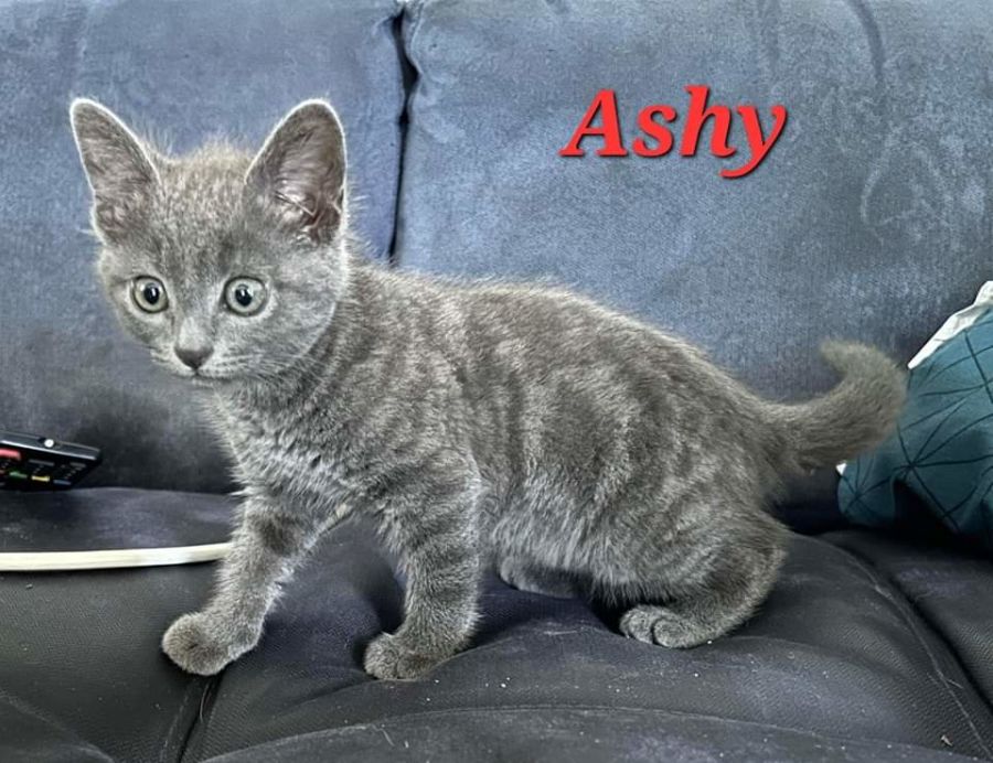 Ashy is currently in foster care with a couple and two dogs. Ashy is building her confidence around the dogs. She had been paired up with another female kitten Smokey who is also looking for a home.