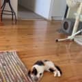 Miss Skittles loves to play with her foster brother and isn’t worried about a big border collie that the foster carer has.