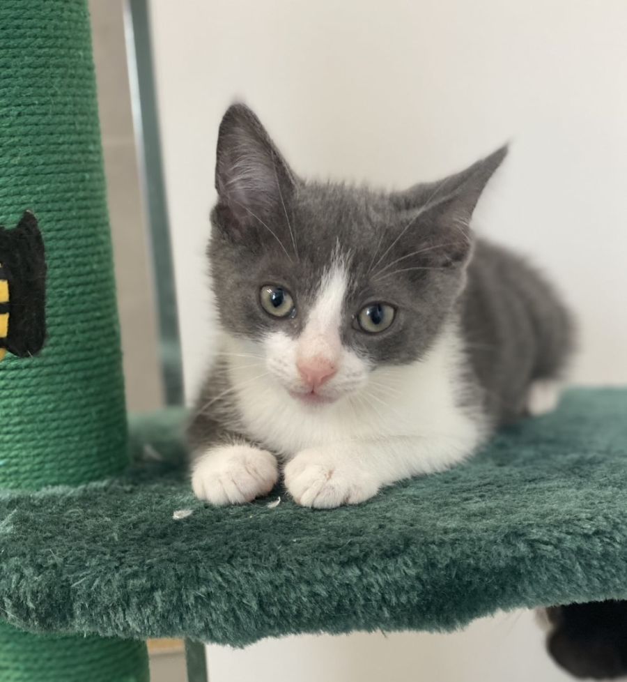 Walter is very active and will need another young cat in his home - either one of his siblings or a new friend. He can often be found cuddling with his siblings when he sleeps.