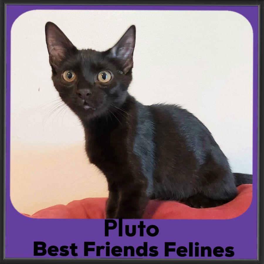 Hi I'm Pluto and I'm a beautiful black kitty with big beautiful eyes. I'm a little on the shy side but I'm still little so I'm still learning.
