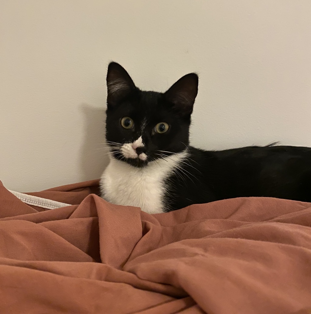 Salvatore is a sweet and cuddly girl who is happy to be picked up. She will regularly flop down on the floor in front of her humans to be kissed and cuddled. She enjoys weaving between her humans legs and is always hanging out with her people. She gets along well with other cats and regularly chases and plays with them.