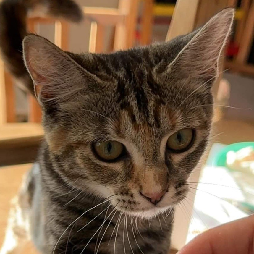 Harley is a very playful and super independent kitten. While she can enjoy her space, she also loves her cuddles. She is the first one to curl up with you in bed after a long day and has the softest purr. Harley is a bit cheeky with the family dogs and will tease them when she can: she is unfazed by them. Her favourite activity is to sit by the fish tank and try to catch the fish through the glass... her confused look is the cutest! She has been very curious with the family's rabbits and birds but will walk away if they move! Any new pets will need a gradual introduction with Harley.