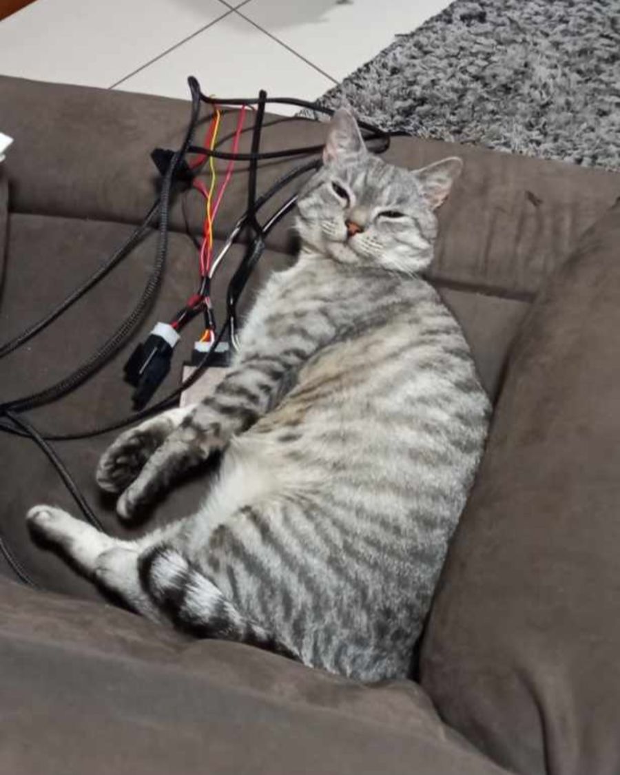 I love to do figure 8s around his legs and I sleep on the bed with him every night. My favourite pass time is to watch the lizards through the window. They come right up to the glass door to greet me every day and we watch each other for hours. I also like to supervise everything you're doing in case you need an assistance! I'm the perfect cat companion.