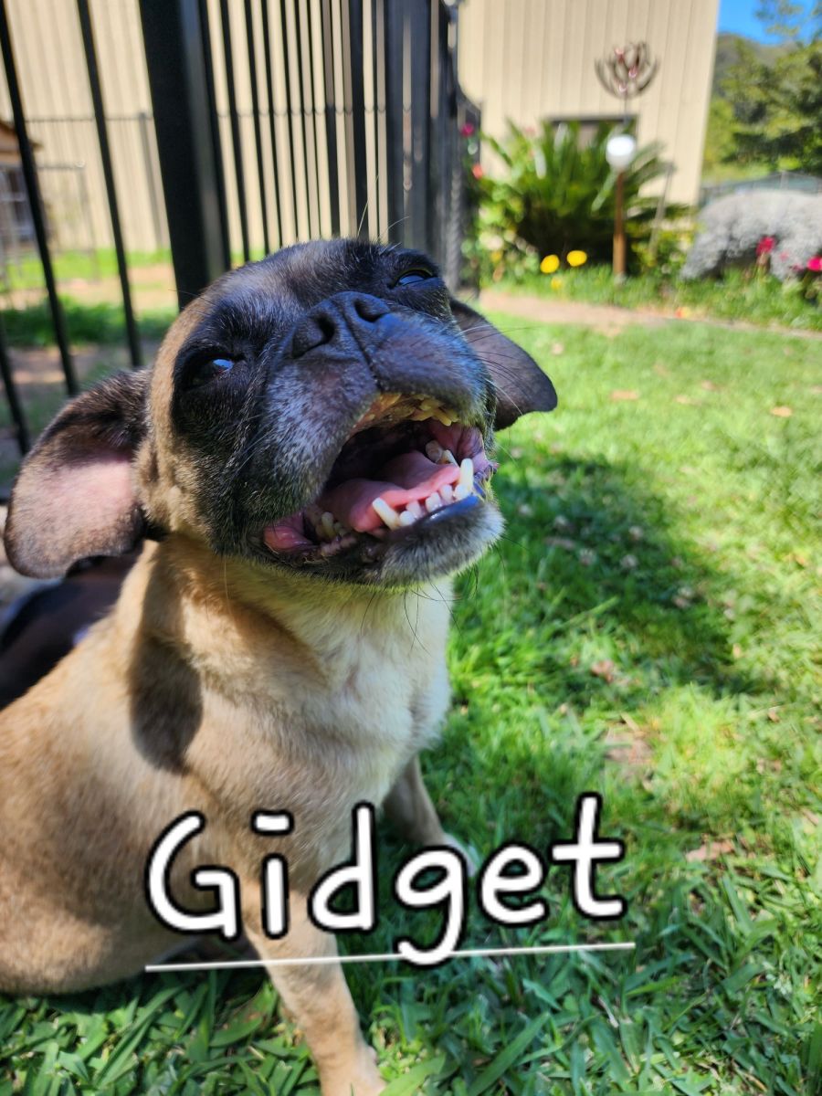 Gidget will be the sunshine in your day, such a happy girl. She just wants to be with her humans all the time. she gets on well with her animal and human brothers and sisters. She is not interested in the cat, she is happy to have it around. Gidget would be well suited with someone or family who has another doggy for her to play and cuddle with although this is not a deal breaker. She likes to go for rides in the car and is slowly learning to lead walk. Gidget is a 7yo Pug X she has had all of her vet work completed and is ready to go.