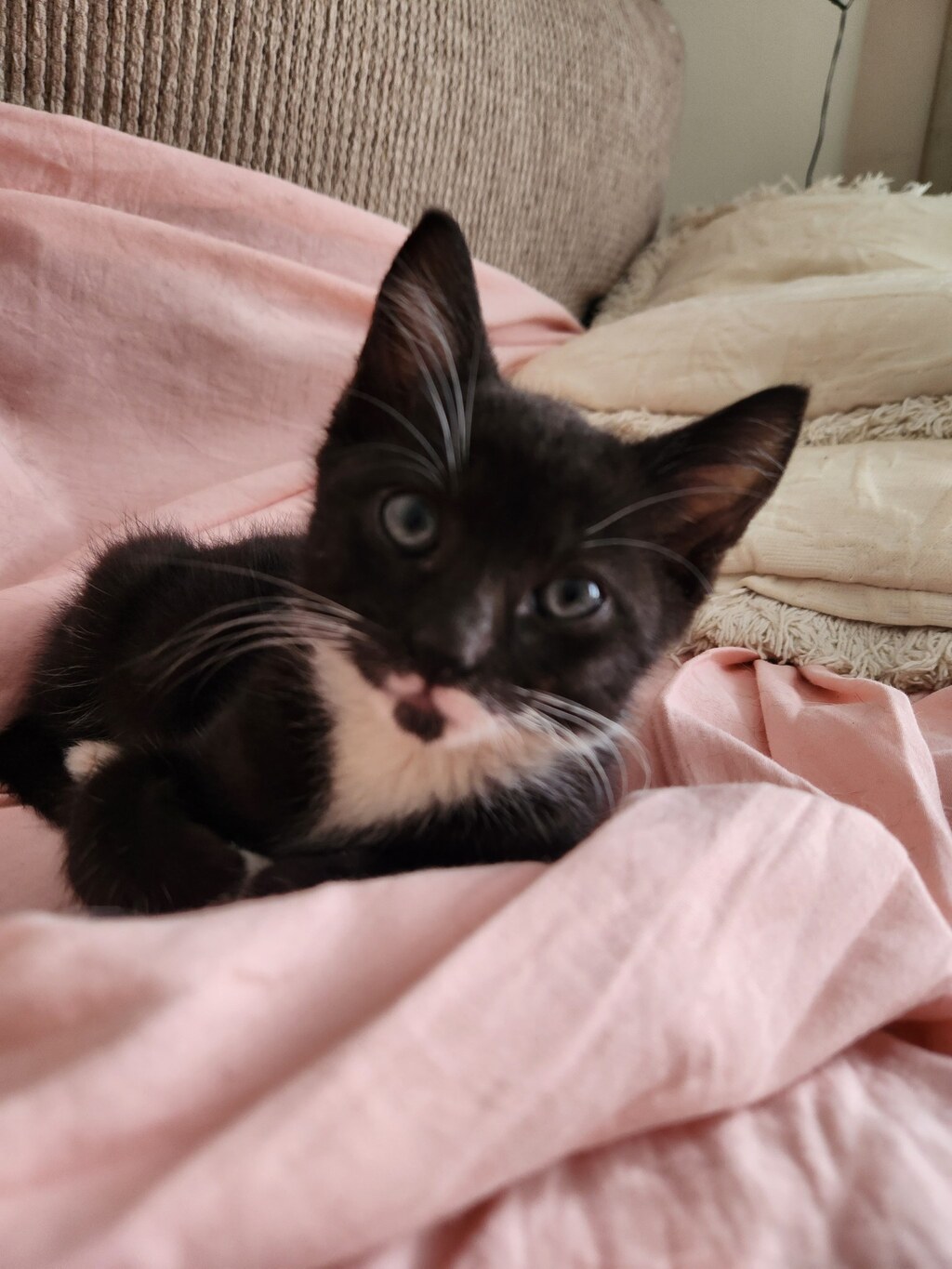We are totally biased, but Spatula and his brother Tongs really are such lovely, gentle and confident kitties. Super playful and comfortable enough to come and snuggle on laps. We would love them to go a home together but are accepting single kitten applications.