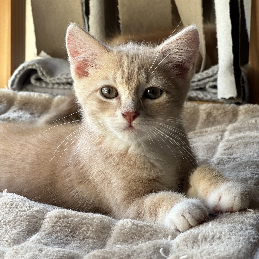 Tim (AKA Tim Minchin!) is a playful and confident, champagne tabby, and isn't he a handsome boy! He loves to play, run and wrestle with his brother Ed. Tim uses his kitty litter and eats well. He likes his cuddles and has good loud purr. He enjoys being nearby to his people but isn't a lap sitter just yet.