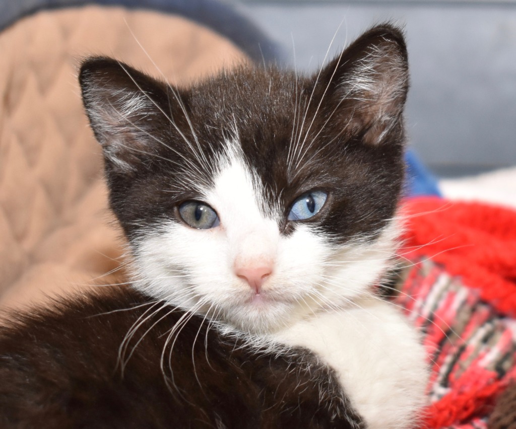 Hi there, I'm Bluey the two different blue-eyed kitten.