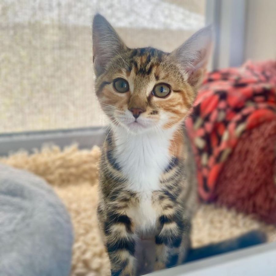 Tumeric is a lovely little, tabby torti kitten looking for a family to join. She is full of kitten love and fun.