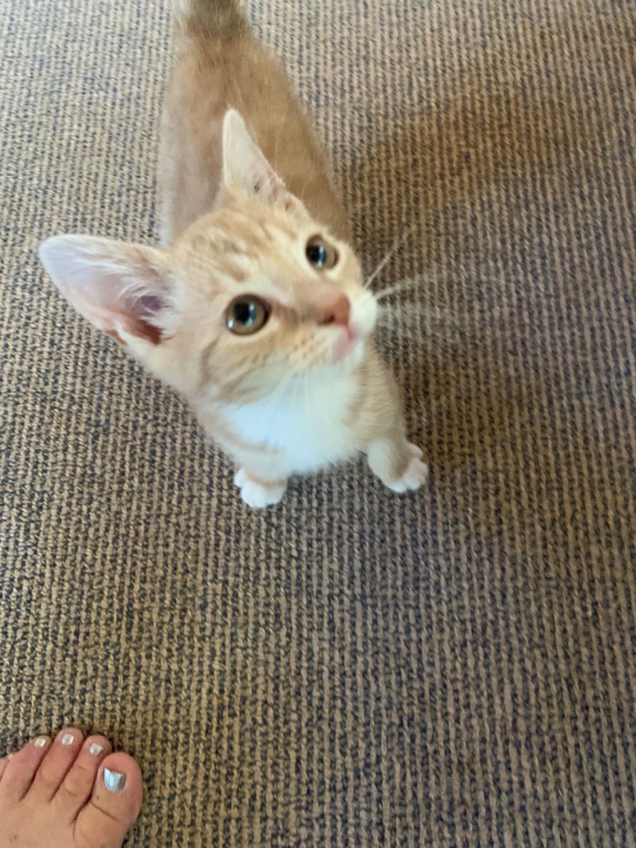 Eugenie is a really friendly and playful and sweet little girl. She loves to race about and be patted and loved on. Currently fostered with other cats and dogs she will be suitable for most types of homes.
