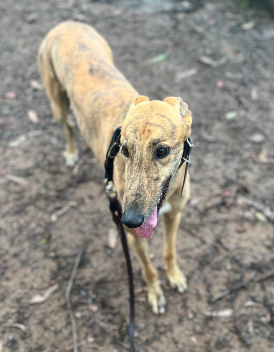Bono is a stunning 4-year-old male greyhound with a striking red brindle coat. He is incredibly polite on the lead and loves to go for walks, jumping excitedly into the car when it's time for an adventure. He has a particularly gentle nature when it comes to children, making him a wonderful family man.