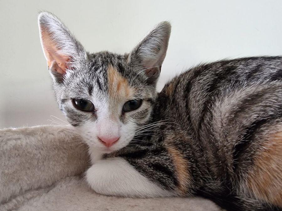 She is also a little energizer bunny and loves to run, jump and climb, she would benefit in a house with a good sized cat tree for her to climb.