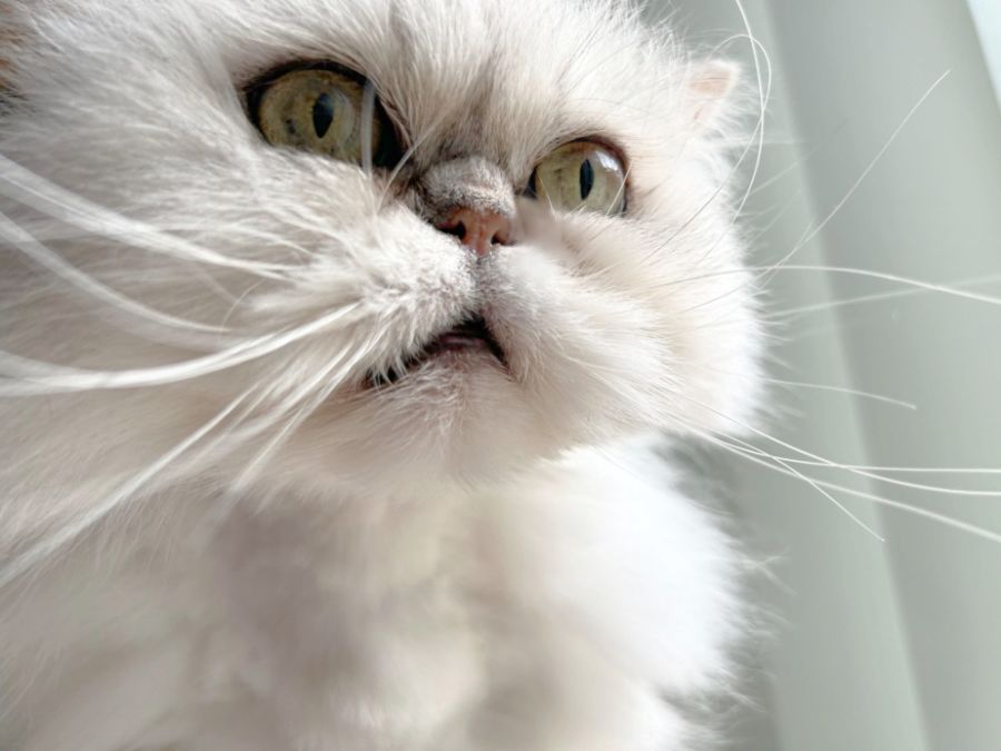 She is currently in foster care with two other cats and while she doesn’t love them she does tolerate them as long as they aren’t taking the lap she wants. She is a typical chinchilla and likes love, but only on her terms She is happy to sit on a lap and smooch her face all over you and is learning that windows are fabulous to sit in and bask in the sun.