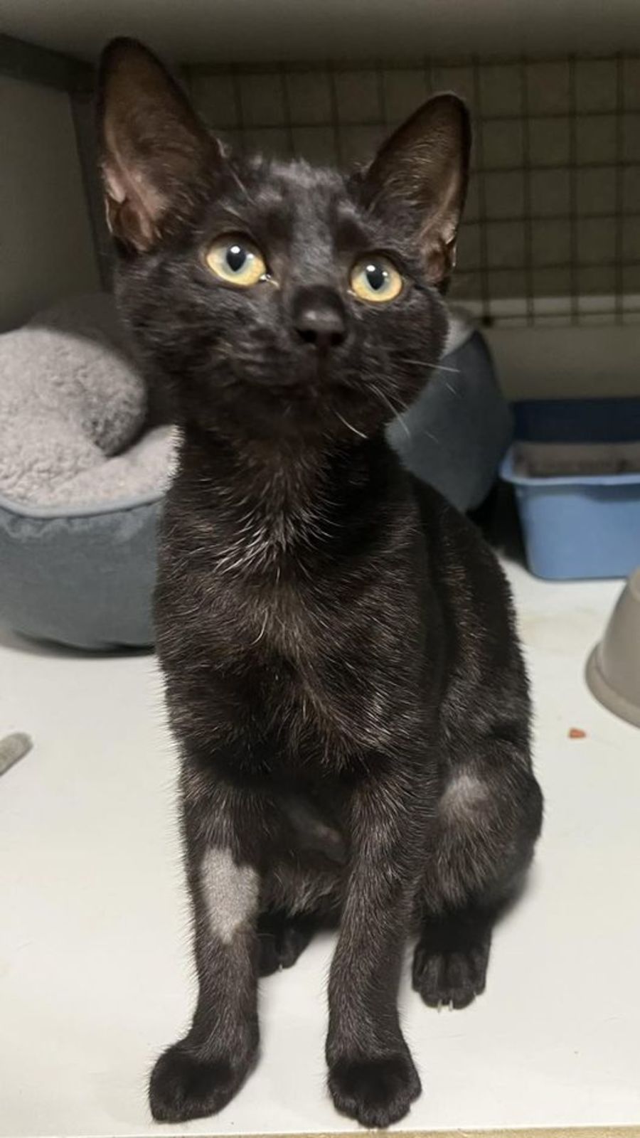 IMP 510 “WENDY” is an 11 week old DSH who came to the shelter as a stray and was never reclaimed. She is a typical kitten who likes to run around and play and then curl up with you for a cuddle. She is an outgoing little girl who is gradually warming up to other felines. She is litter trained and keeps her cage clean. Her adoption fee is $204 which includes desexing, microchipping, vaccination, registration and worm and flea treatment. If you would like to adopt WENDY please contact the shelter on 65833488. Thank you.
