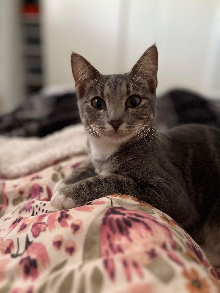 The beautiful Blessing - she is beginning to come into her own - since coming into care with 12 siblings - Blessing was a terrified kitten. Since we have begun moving kittens in pairs to other carers - the 5 remaining have ventured out and show some curiosity. Blessing has made enough progress to move to a new carer - to join 3 friendly resident kittens who will help her to learn to trust humans and enjoy domestic life. A really pretty female tabby, worthy of a wonderful home and family. Time and patience - will truly win this little girl over.