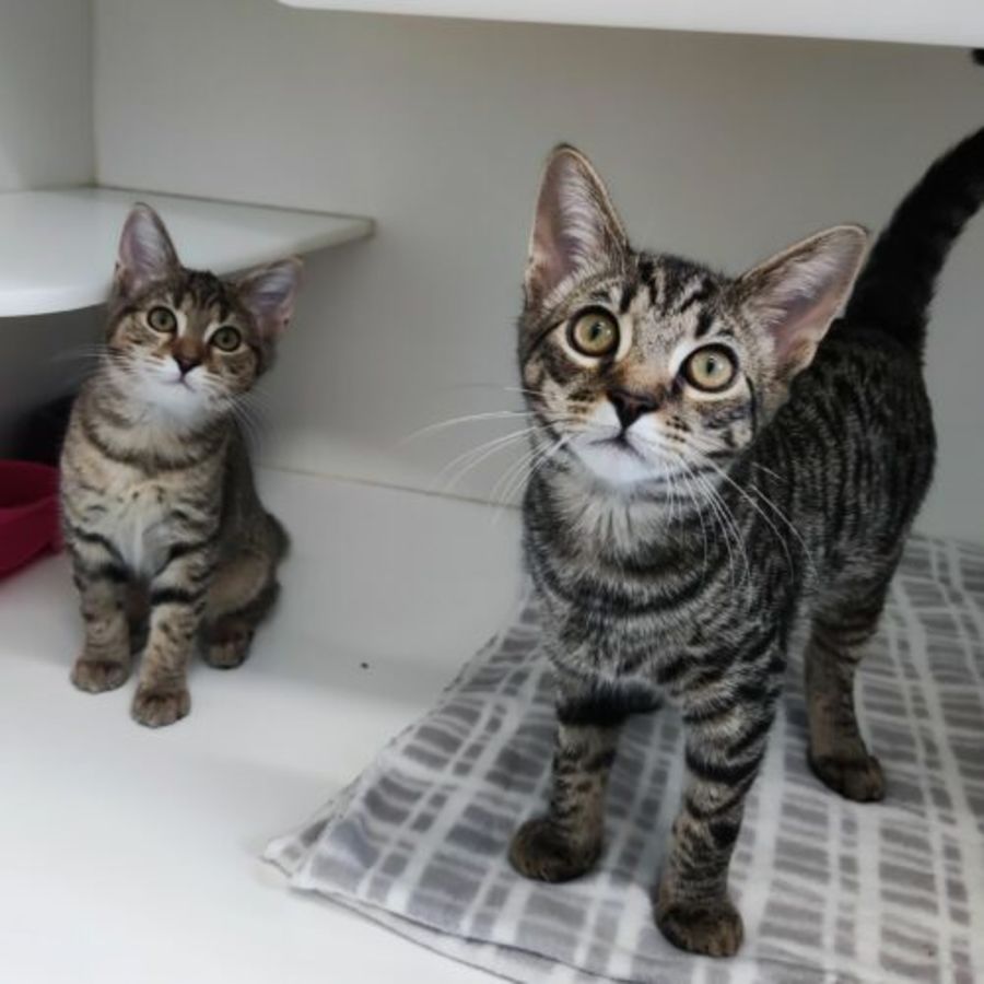 These two will wrestle and play together and we just know they will be best buds for life. They love toys and to climb all the way to the top of their cat tower.