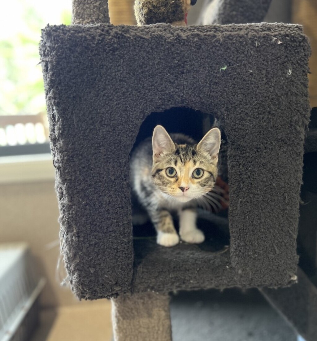 Brandy is a beautiful young kitten who has spent all her life alongside her sibling Ray J but is now ready to move on to a more independent lifestyle outside of the shelter. Brandy loves playing with anything she can get her little mittens on, watching birds and butterflies fly by the window and essentially finding any warm cosy spot to have a rest in between all of her adventurous activities.