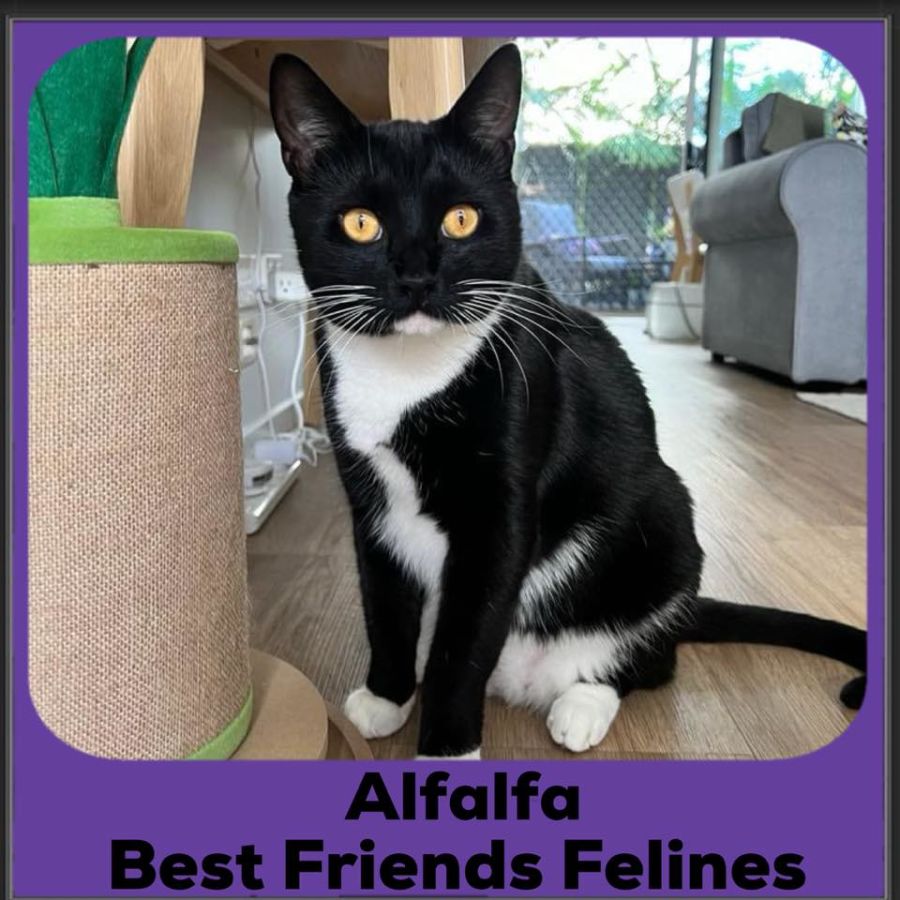 Sick of endless trawling through dating apps trying to find the right one? Like a sweet heart but also a bad boy? Look no further! Alfalfa is here and is ready to sweep you off your feet (literally). As the most confident of his litter, Alfie is here to impress you with his suave moves and his permanent tuxedo. Alfie LOVES to play and sometimes forgets that not everything is meant to be played with. RIP his foster mother’s paperwork pile. Alfie also likes to investigate. Whatever you’re doing or wherever he’s not allowed to be, that’s where Alfie wants to be. He’s just super curious (or maybe super cheeky; we’re not sure). Whatever happens, Alfie in his little suit is there to love and play hard. Come meet your own James Bond and see how quickly you fall for him.