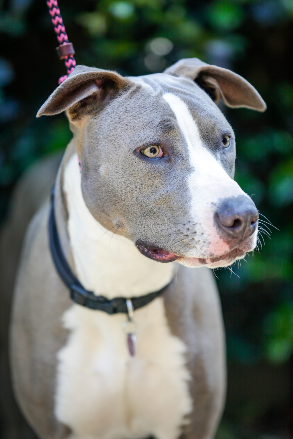 Maisy's strength requires ongoing training on lead, and she responds well to guidance, frequently checking in on her handlers during loose lead training walks. A harness might be more suitable for her, and she would thrive with a fit owner who can continue to manage her strength on walks.