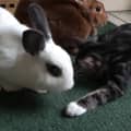 He was hand raised from birth so he has single child/kitty syndrome. Could use a cat sibling to guide him to be the best cat that he can be. Was fostered by a couple of humans who owned rabbits, these bunnies adopted chucky and absolutely adore him.