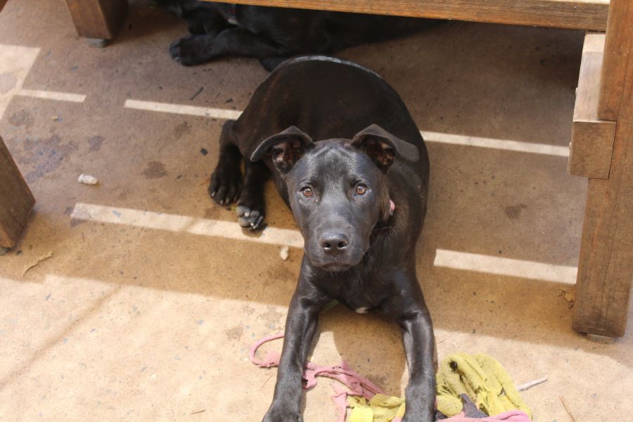 Vander came in at 4 weeks old, with his brother and sister. We were told they are Ridgeback cross Shepherds and maybe that was what Mum was. Dad however must have short legs and is a dark brindle may have been an English Staffy or something similar. It would be interesting to do a DNA on them. They are typical naughty active playful pups that are responding well to training. They are crate trained as they sleep in the house in crates at night, during the day they are outside playing. They seem to get on with other dogs and people