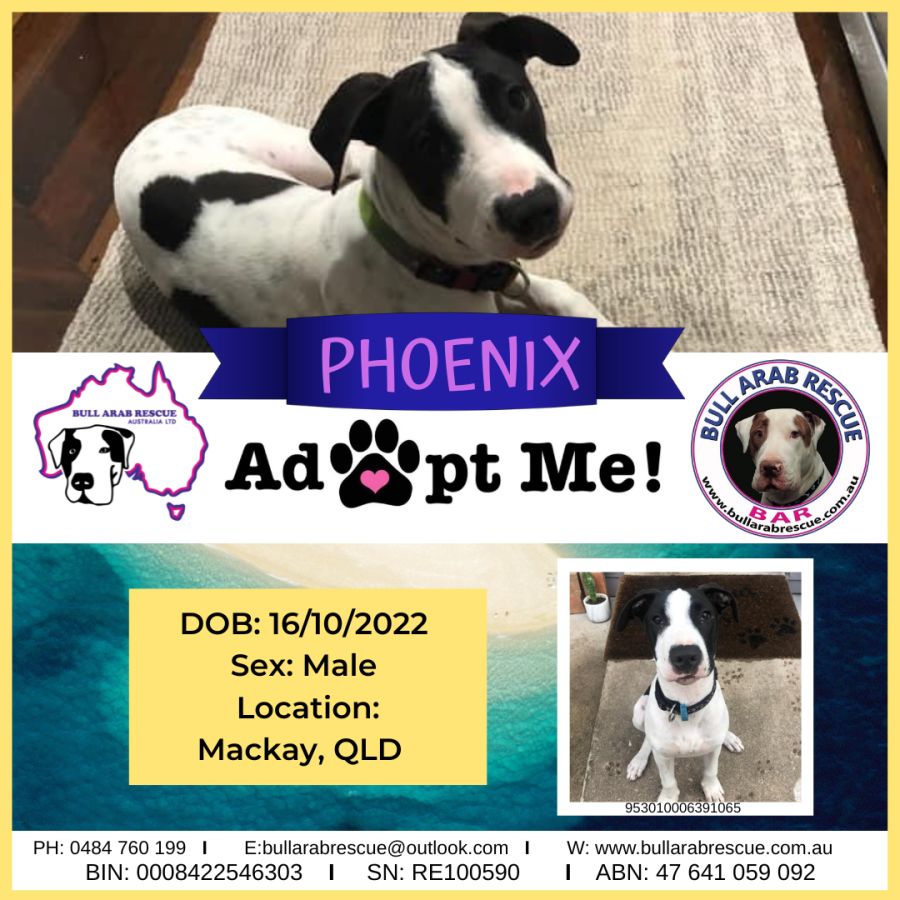 Phoenix is located in Mackay, QLD. He can be transported Australia wide.