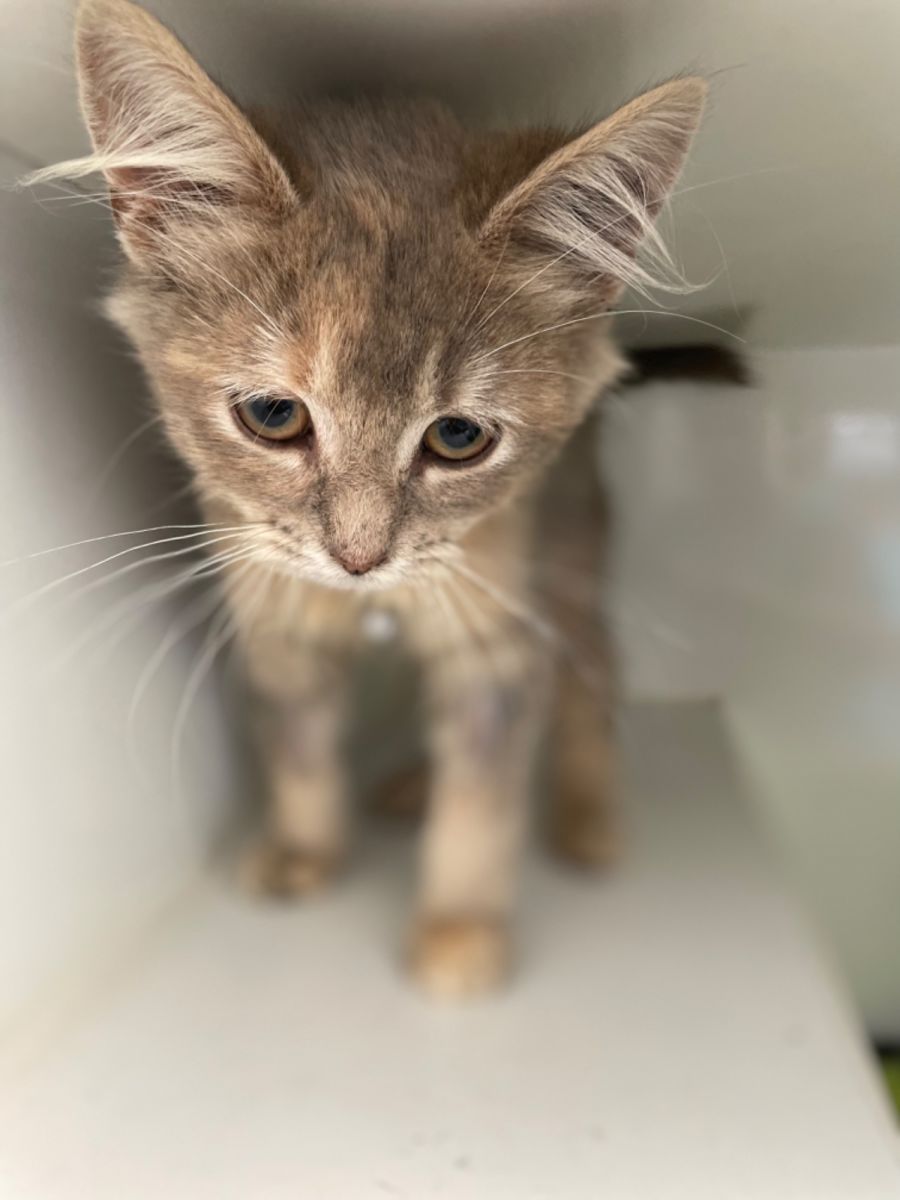 Alice is a 4 month old female Domestic Medium Hair who loves to play and explore. She's a curious little one who loves investigating new places. She's also a very smoochy and lovable cat, always looking for cuddles from her owners.