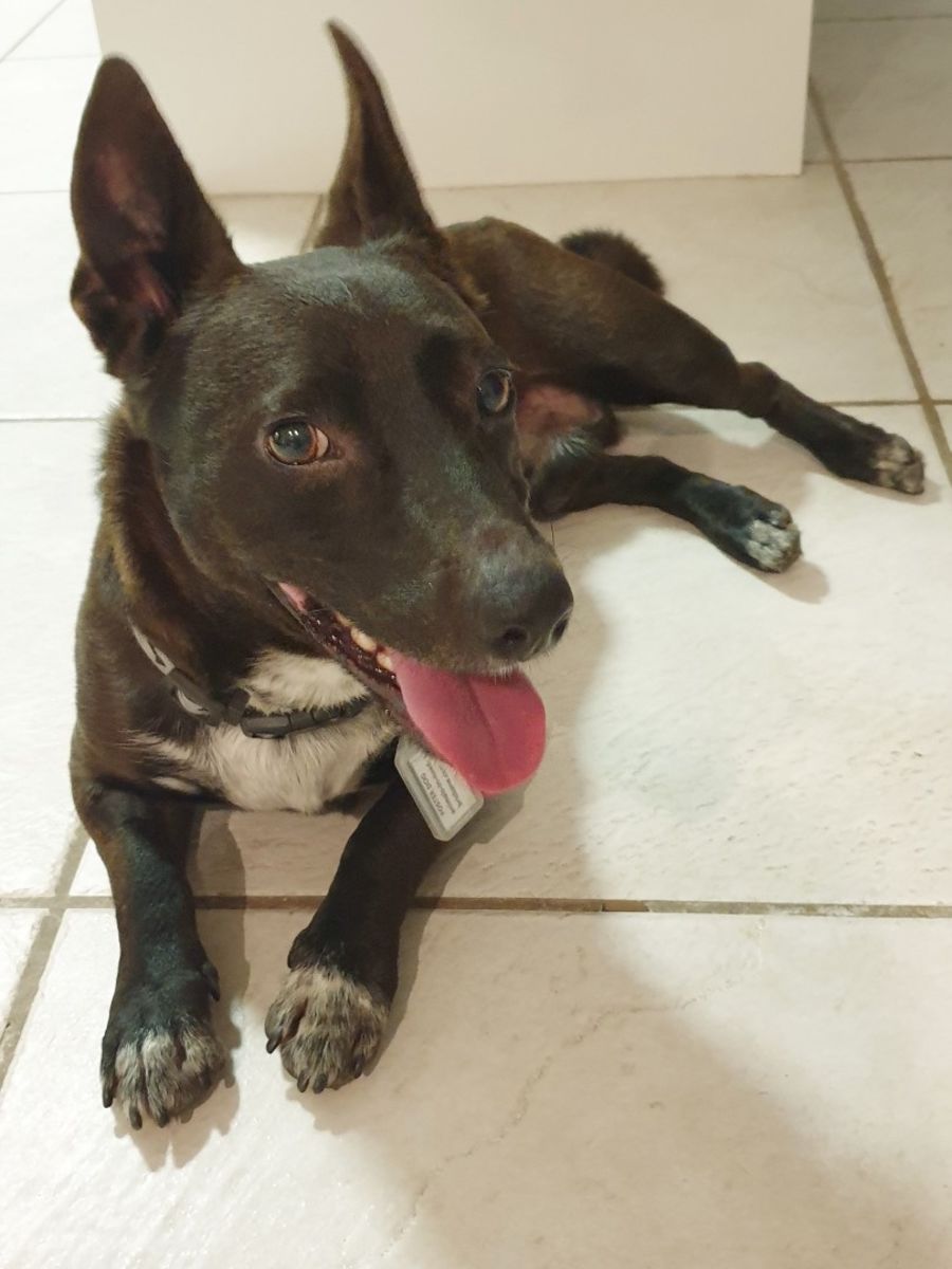 This sweet boy, who is very confident, has a long body like a Dashie & a Kelpie head, with a lush chocolate coat like a Kelpie !