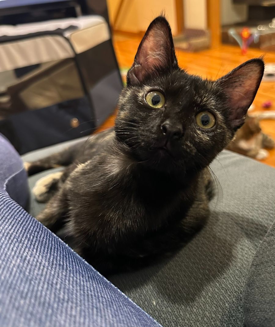 Hi, my name is Elodie and I am a little tortie girl and I hope to get a owner with good hearing. Why you ask.? Well my purr is so soft you will need great hearing to listen to it. I do turn it on when I am content, so you will need to listen closely.