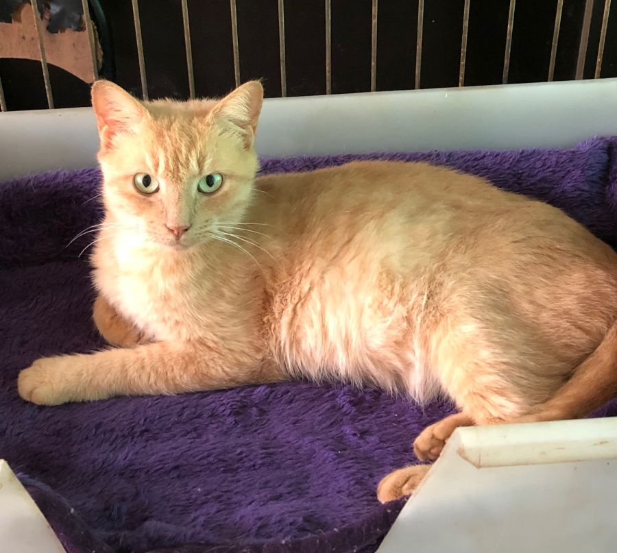 Meet Peach! This sweet kitty was recently left behind by her previous owner, and is now looking for a new home. Peach is a gentle soul who loves attention; she'll happily bask in your affection when you come to pet her. She may be a bit shy at first, but with some patience and love she'll soon warm up to you.